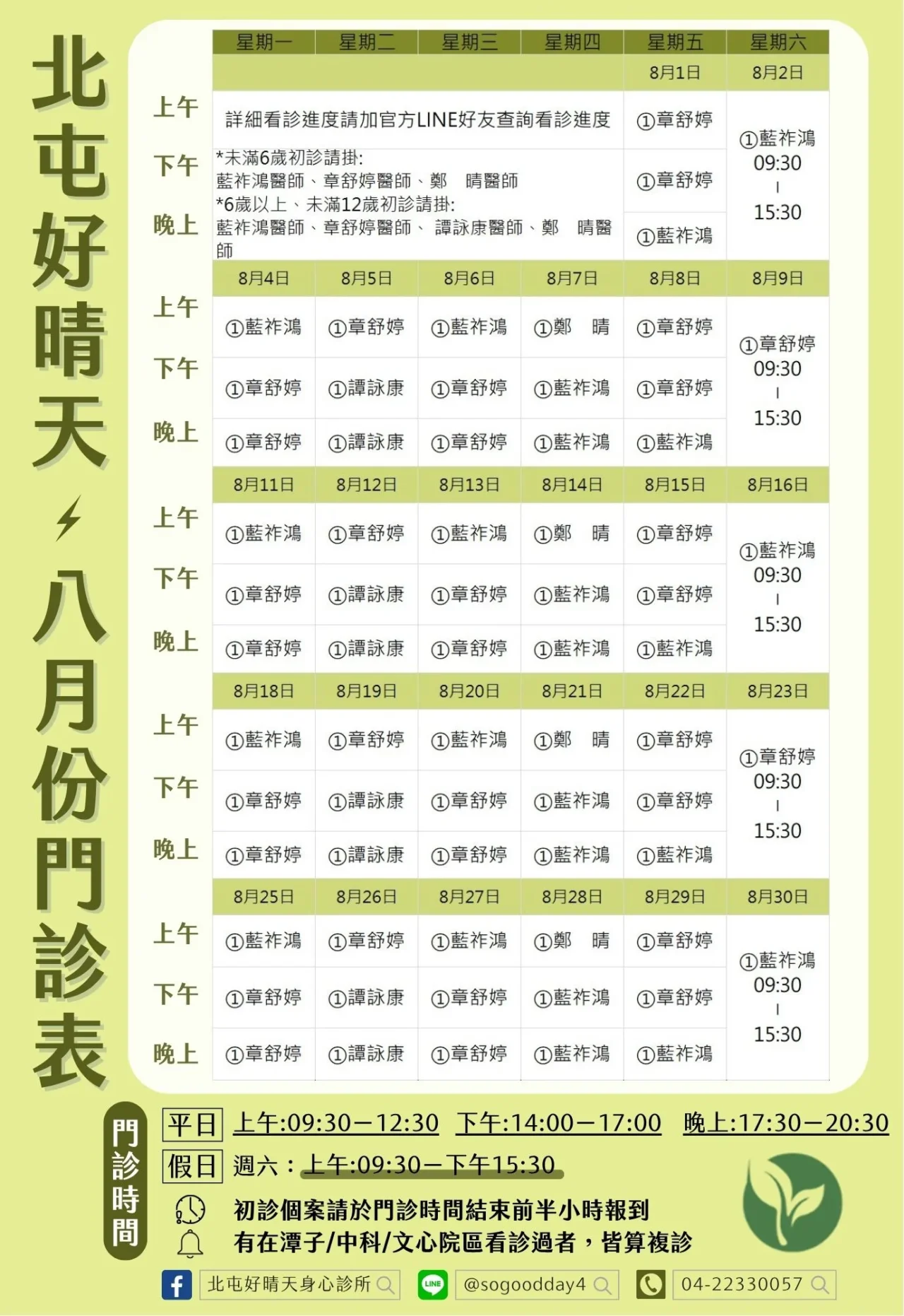 ⭐️好晴天門診表 👉https://sogoodday.com.tw/new/sticky-message-time/