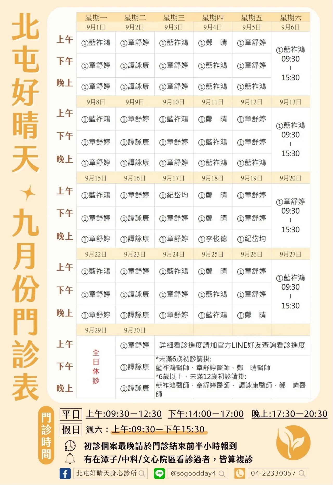 ⭐️文心好晴天門診表 👉https://sogoodday.com.tw/new/wenxin-time/