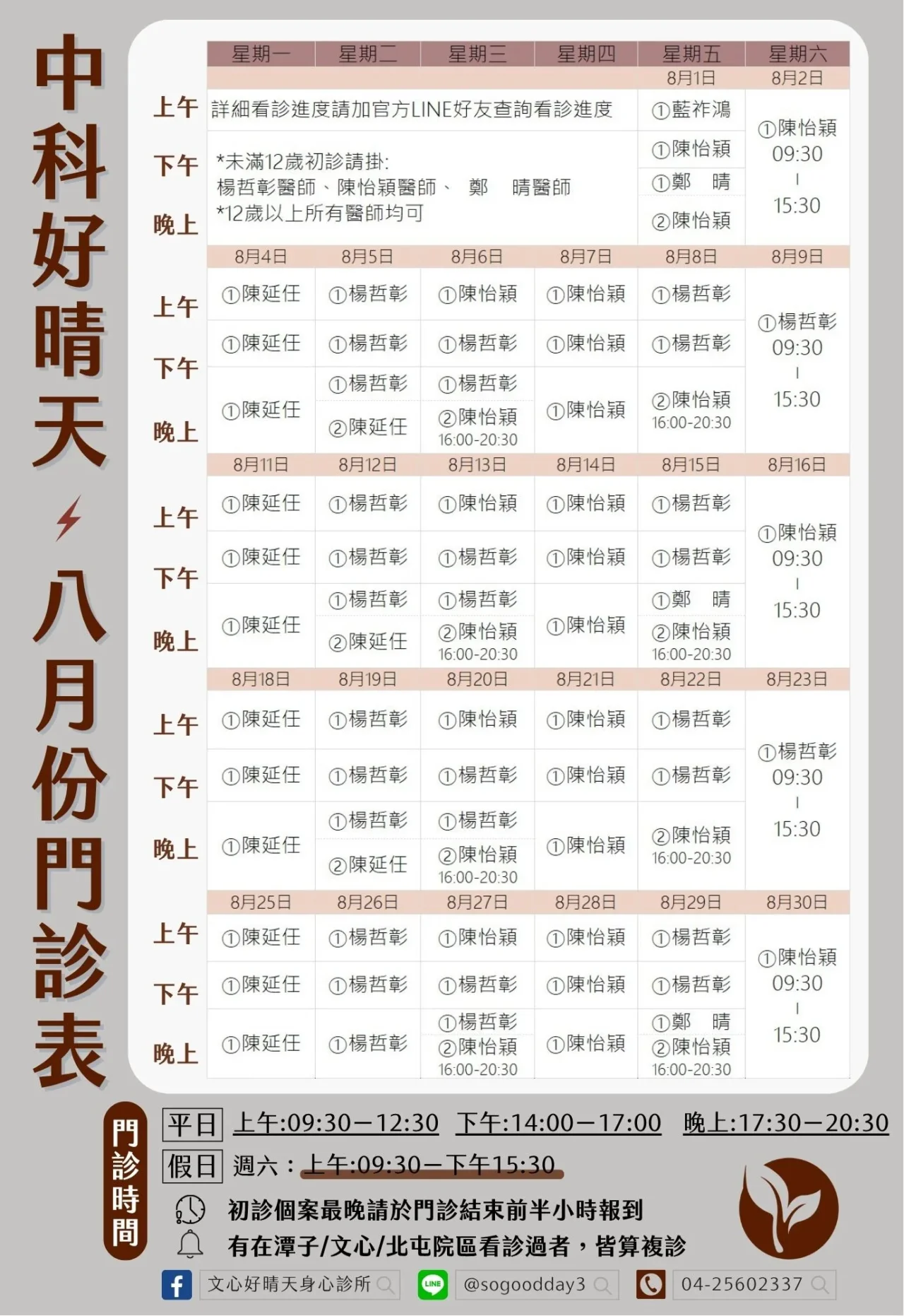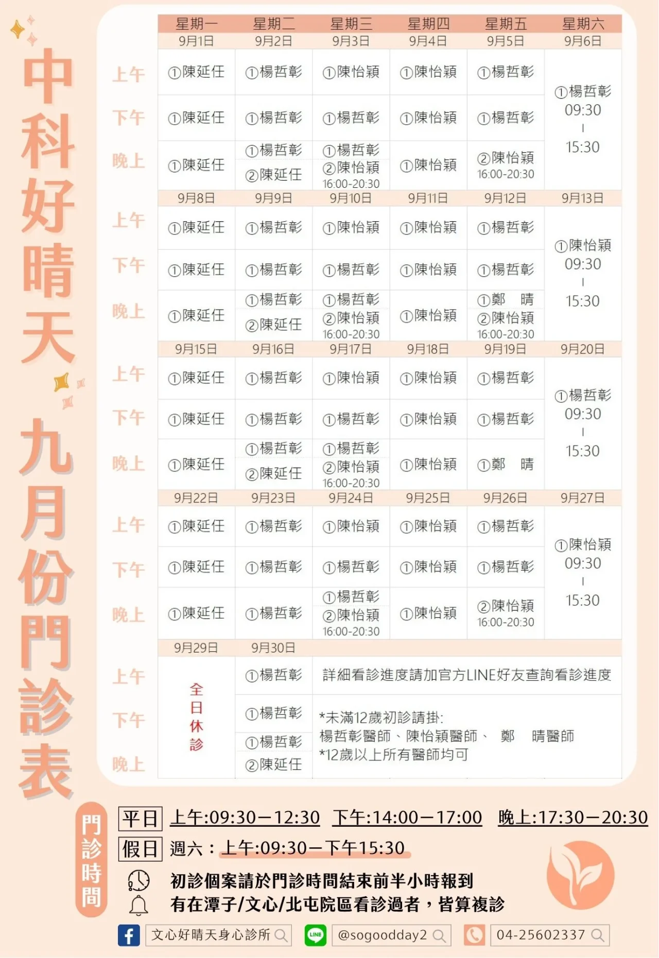 ⭐️文心好晴天門診表 👉https://sogoodday.com.tw/new/wenxin-time/