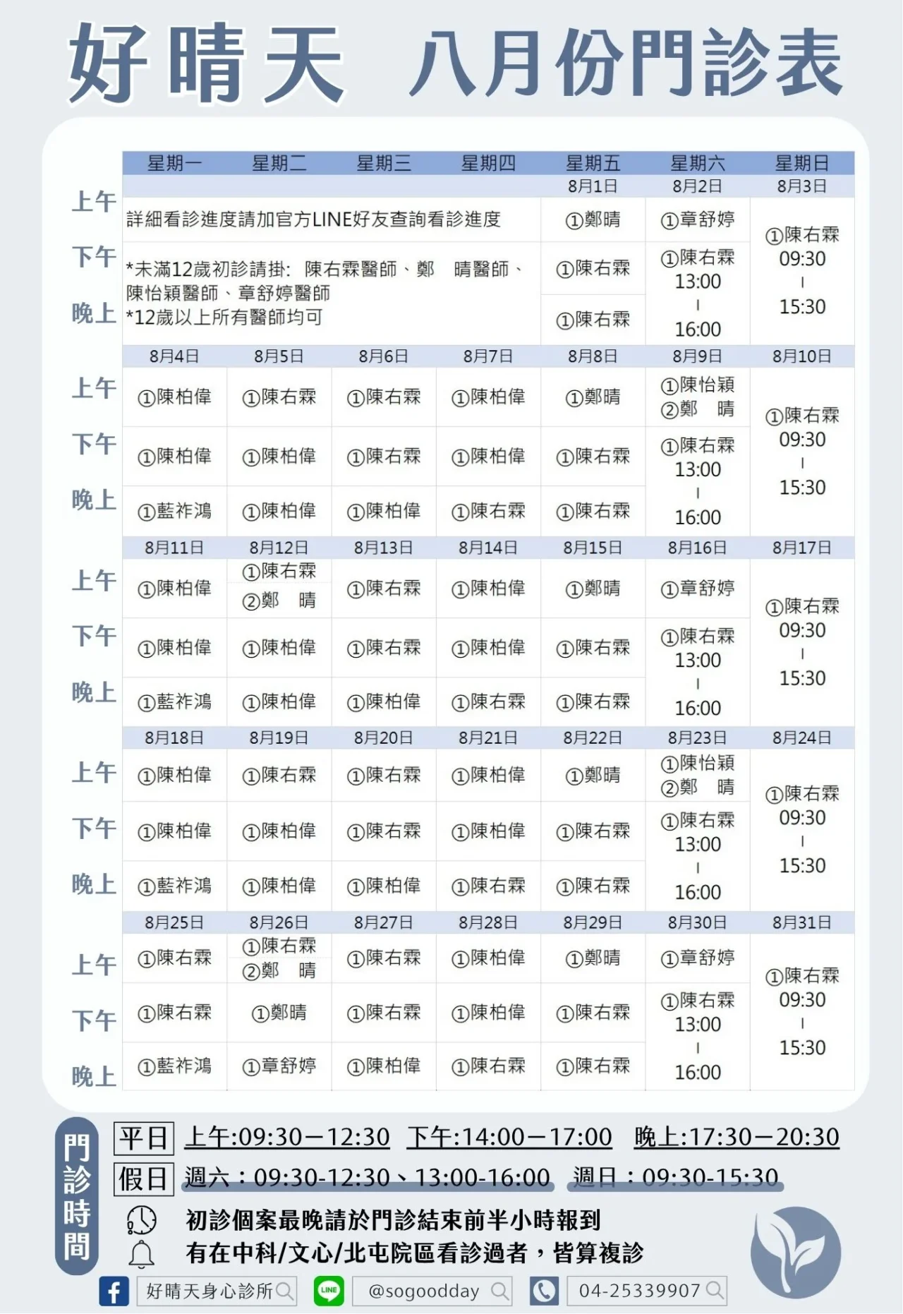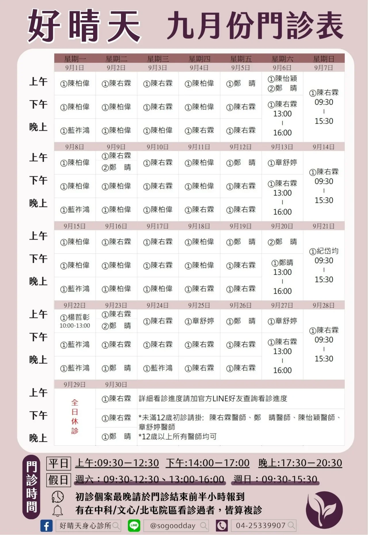 ⭐️文心好晴天門診表 👉https://sogoodday.com.tw/new/wenxin-time/