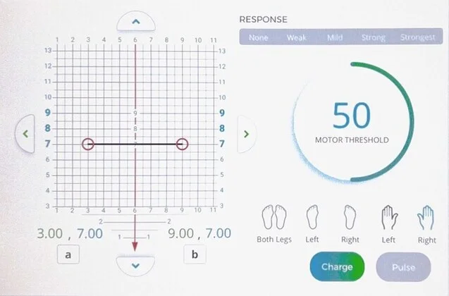 個案進行完整評估後,藉由程式計算及定位出運動皮質區,來定位出正確的憂鬱症及其他症狀相關腦區,並定量運動皮質區的強度。定位出正確腦區及運動皮質強度後,調整劑量,便可進行第一次施打。